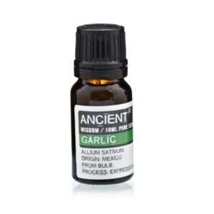 En aromaterapia, el ajo es reconocido por sus propiedades estimulantes, depurativas y protectoras. Tradicionalmente se ha empleado como un aliado para reforzar la vitalidad, limpiar el organismo y aportar claridad mental. Espiritualmente, el ajo ha sido considerado un poderoso talismán frente a energías densas, utilizado en culturas de todo el mundo como escudo protector y purificador.