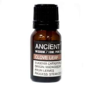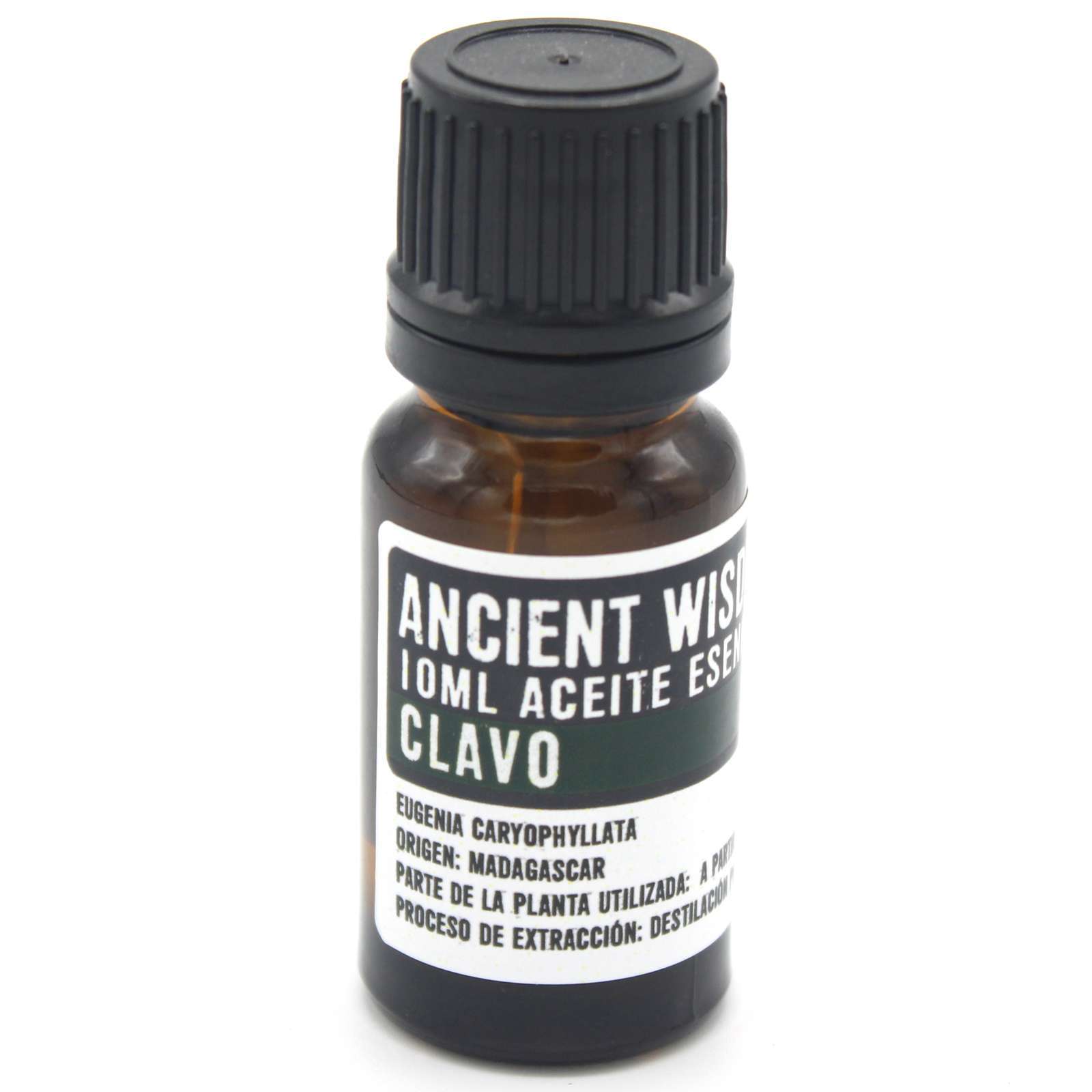 Este es un aceite potente con un olor cálido, fuerte y picante y debe usarse muy diluido y con mucho cuidado en aromaterapia. El aceite esencial de clavo se puede usar para curar o aliviar el acné, moretones, cortes y quemaduras, llagas en las piernas y como un analgésico para el reumatismo y la artritis. Se dice que también es bueno para el sistema digestivo, ya que ayuda con vómitos, diarrea, flatulencia, espasmos y parásitos. Se considera valioso para aliviarproblemas respiratorios como bronquitis, asma y tuberculosis.