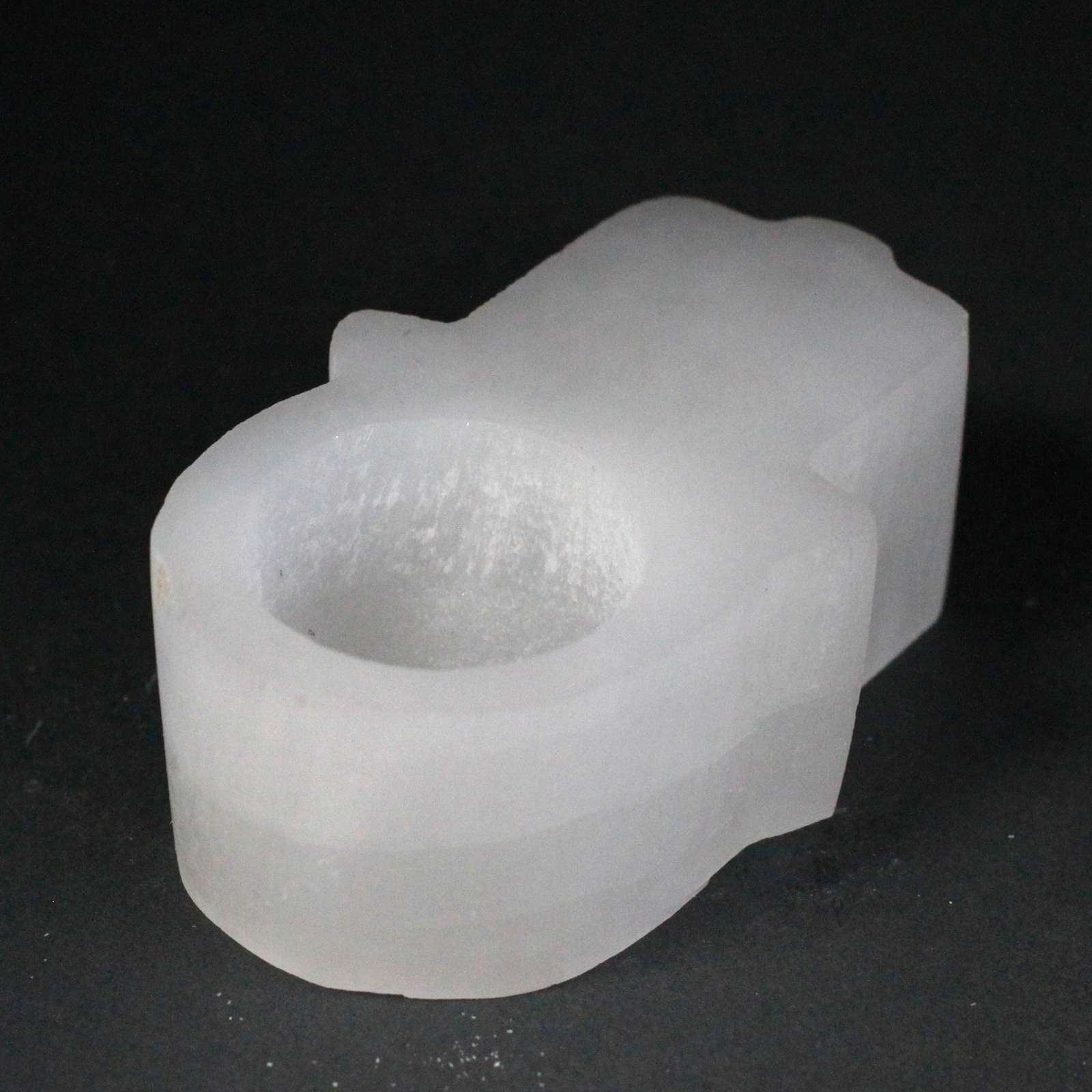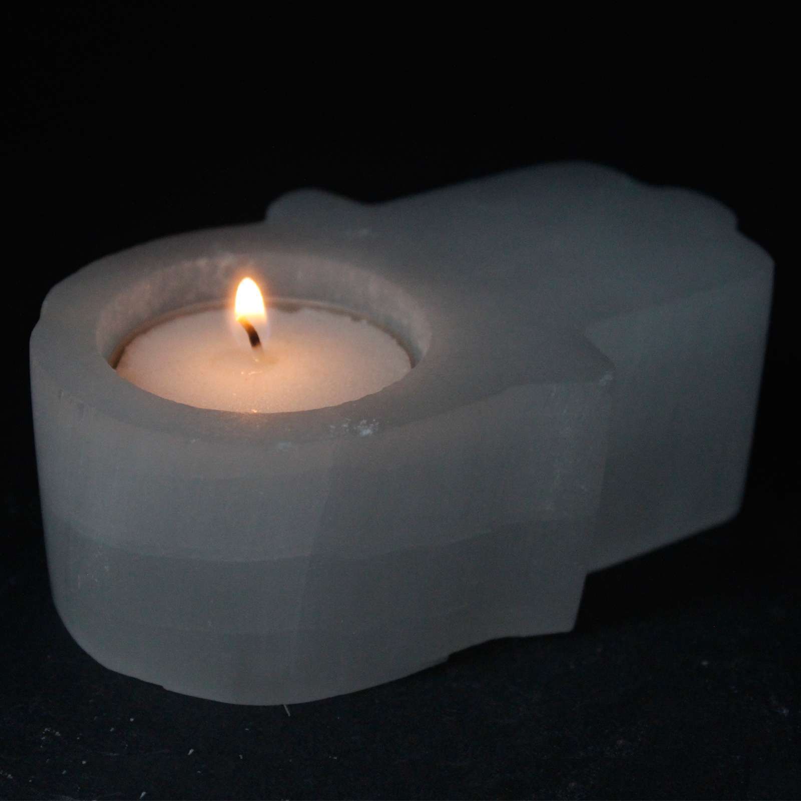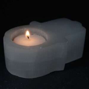 La selenita, que es una especie de cristal translúcido, permite que la llama de la vela parpadee ligeramente a través de las paredes del candelabro. Los bordes de los candelabros son ásperos, lo cual es natural para la selenita.