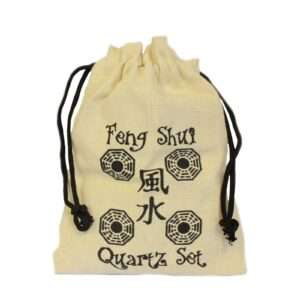 El set se presenta en una bolsita de tela natural decorada con símbolos del ba gua, el mapa energético del Feng Shui. Su elegancia sencilla lo convierte en un objeto tanto espiritual como decorativo, ideal para quienes desean transformar su espacio en un refugio de armonía y luz.