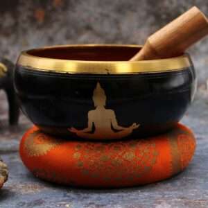 Juego de Cuenco Tibetano Lrg – Buda – Negro/Naranja 14cm