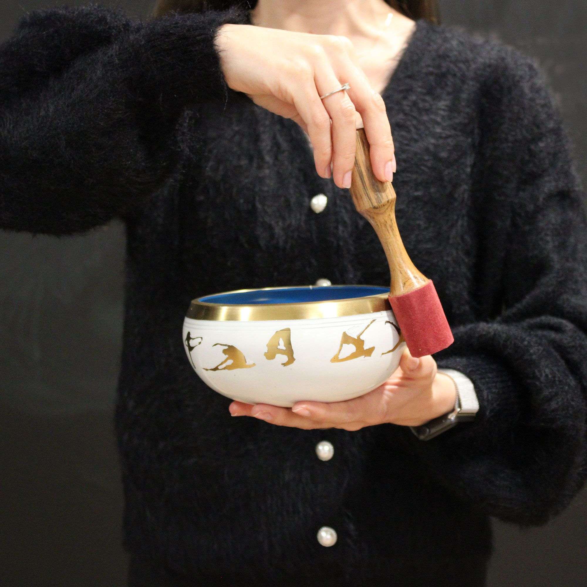 Juego de Cuenco Tibetano Lrg – Movimiento de Yoga – Blanco/Azul 14cm