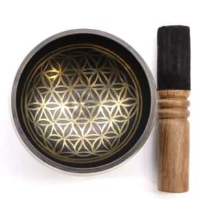 Juego de Cuenco Tibetano – Buda – Negro/Naranja 10,7 cm