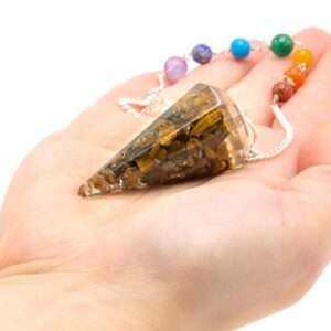 Péndulo del Chakra del Poder de Orgonita – Ojo de Tigre