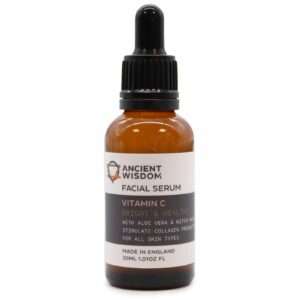 El serum facial de vitamina C contiene aloe vera y hemamelis, que estimula la producción de colágeno.