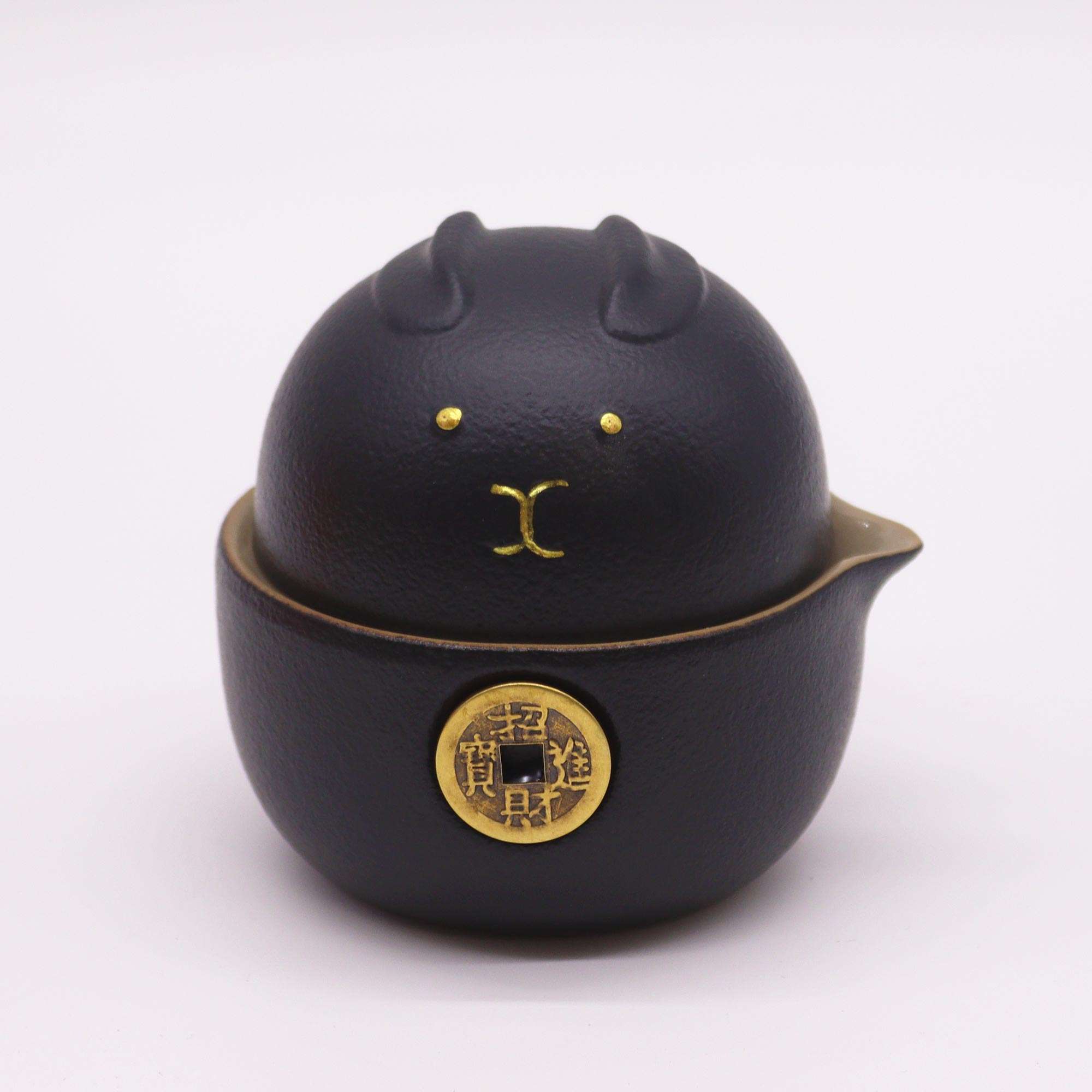 Este encantador set combina lo lúdico, lo tradicional y lo simbólico en una pieza de cerámica negra con detalles dorados y un diseño inspirado en el maneki-neko, el famoso Gato del Dinero japonés. Más que una tetera, es un amuleto ritual: su gesto sonriente y su aura generosa protegen cada infusión como si fueran bendiciones líquidas.