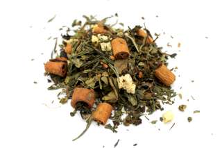 Té verde Sencha, té blanco Pai Mu Tan (30%), canela picada, canela en rama, manzana, almendra laminada.